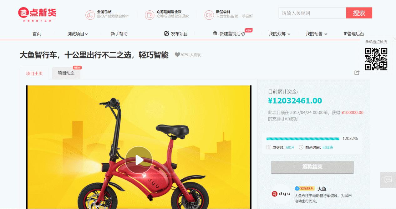 以大鱼D系列为例,其中大鱼D2产品是全球首款具有陀螺仪智能感知技术的电单车,众筹超过1200万,在小轮锂电动车领域一枝独秀。