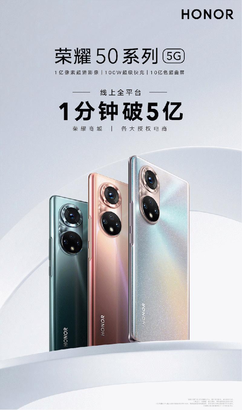 荣耀50系列首销战报出炉 1分钟破5亿 ......