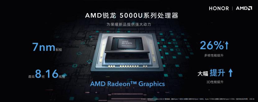 全新荣耀MagicBook14/15锐龙版采用了7nm制程的锐龙5000系列处理器,拥有锐龙 5 5500U、锐龙7 5700U两款芯片配置版本,全部支持多线程,多任务处理,性能强劲,在办公性能与内容创作性能上均与上一代产品有了大幅提升。
