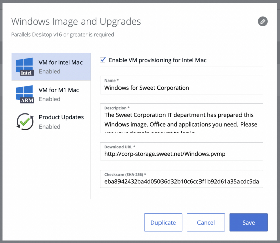 ·全新功能 – 对任何 Mac配置企业虚拟机:业务管理员现在可以将预配置的 Windows 虚拟机集中提供给搭载 Intel 和 Apple M1 芯片的混合 Mac 机群。IT 经理现在可以在 Parallels My Account 中为 Intel 和 Apple M1 Mac指定下载链接和说明,Parallels Desktop 将自动为每个员工下载合适的系统镜像。