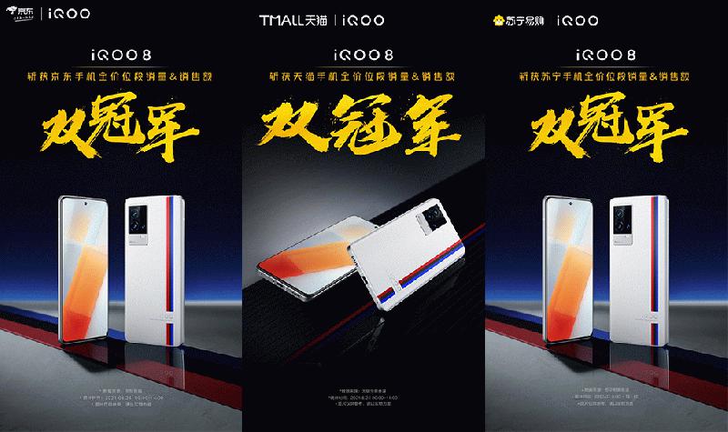 iQOO 8首销 斩获京东天猫苏宁销量销售额双冠军