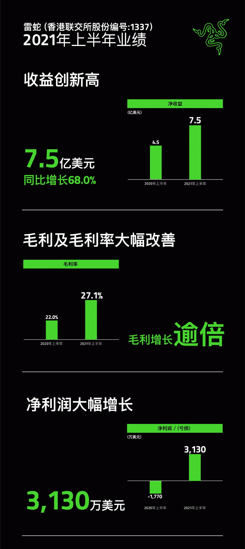 8月25日,雷蛇公布截至2021年6月30日六个月未经审核综合业绩。