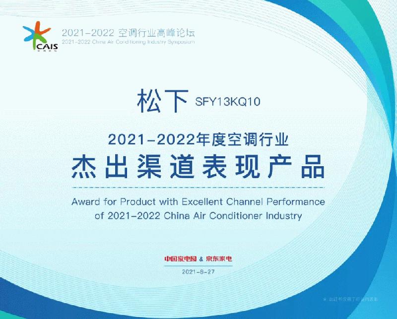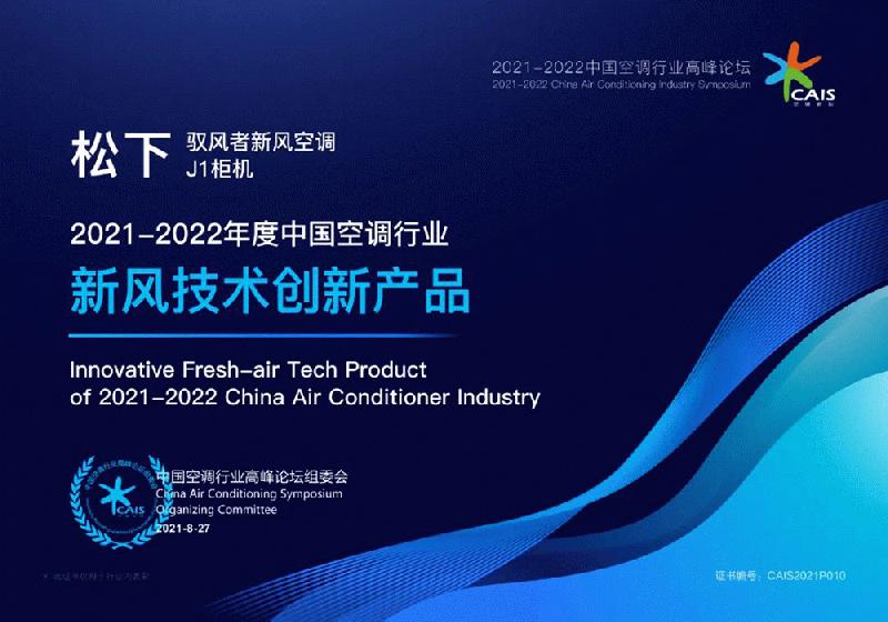 8月27日,2021-2022中国空调行业高峰论坛在北京举办。本届高峰论坛,松下新风空调J1系列柜机获得“2021-2022年度中国空调行业健康新风空调领军品牌”&“2021-2022年度中国空调行业新风技术创新产品”,松下SFY13KQ10系列获得“2021-2022年度空调行业杰出渠道表现产品”。