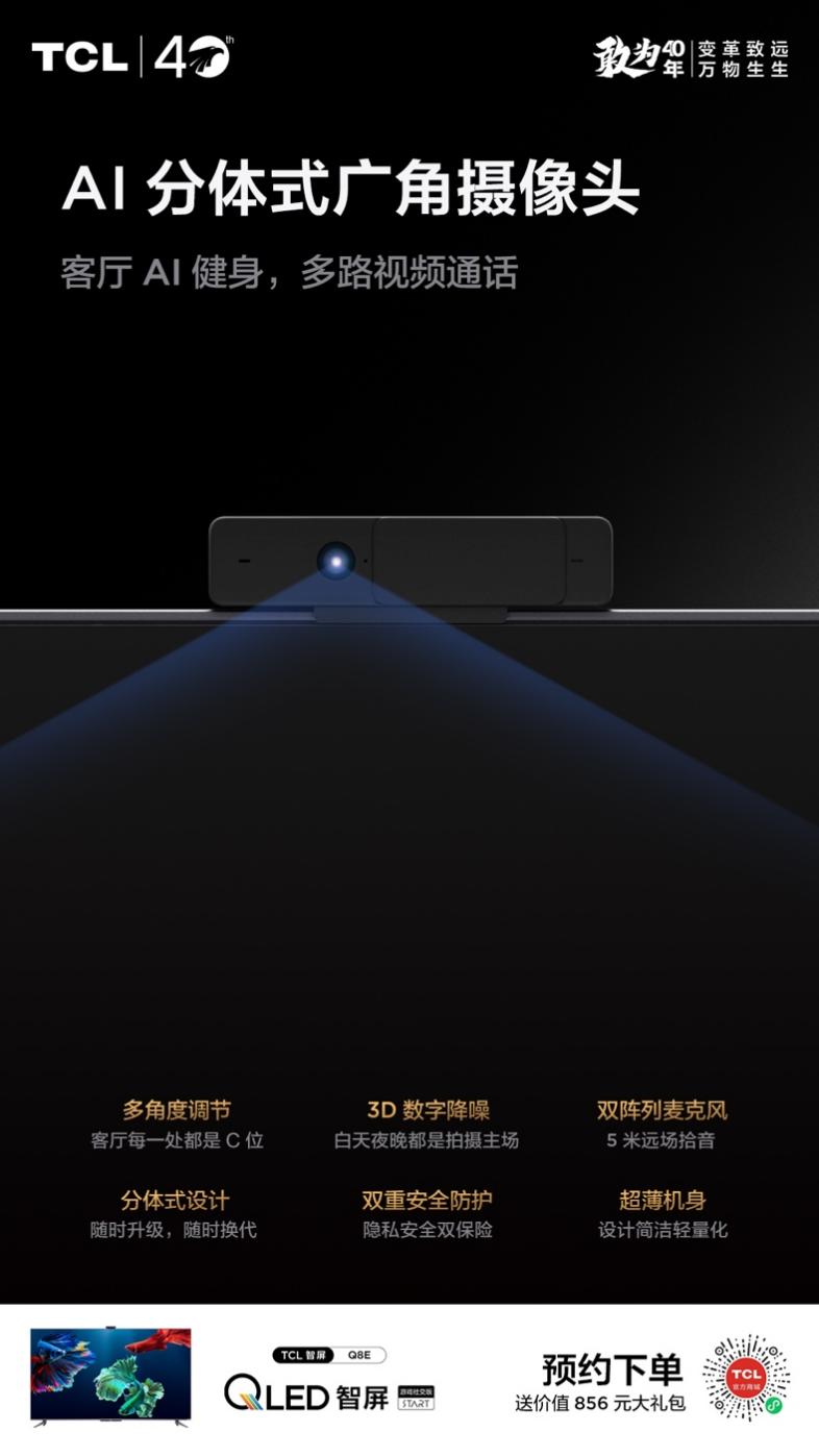 除了有极致的音画体验,TCL Q8E还有非常多了智能化场景。首先是硬件,机身上配备了一个AI分体式广角摄像头,使用的时候连接上,不用的时候就断电隐藏,真正做到隐私安全双保险,还可以随时进行升级换代。在家庭拍照合影时候,不管处于客厅什么位置,都能够随意调节,拍出最满意的照片。