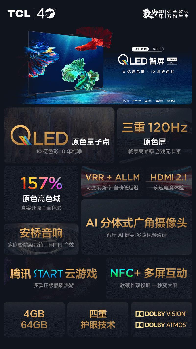 作为QLED量子点显示技术的引领者,TCL用自身的研发实力推动着QLED量子点电视的发展,让色彩优势更大、动态范围更广、显示寿命更长的QLED电视深入用户的家庭,并且带来了独家研发的QLED魅丽珑芯片引擎以及Q画质双引擎,从显示技术、专业画质处理芯片多方面实现了大屏电视显示画质的全方位提升。而与腾讯START云游戏合作、全面搭载次世代科技技术,也让电视不再是以前简单播放卫视节目的角色,而是成为了包含游戏、视频、互动在内的一站式客厅设备。