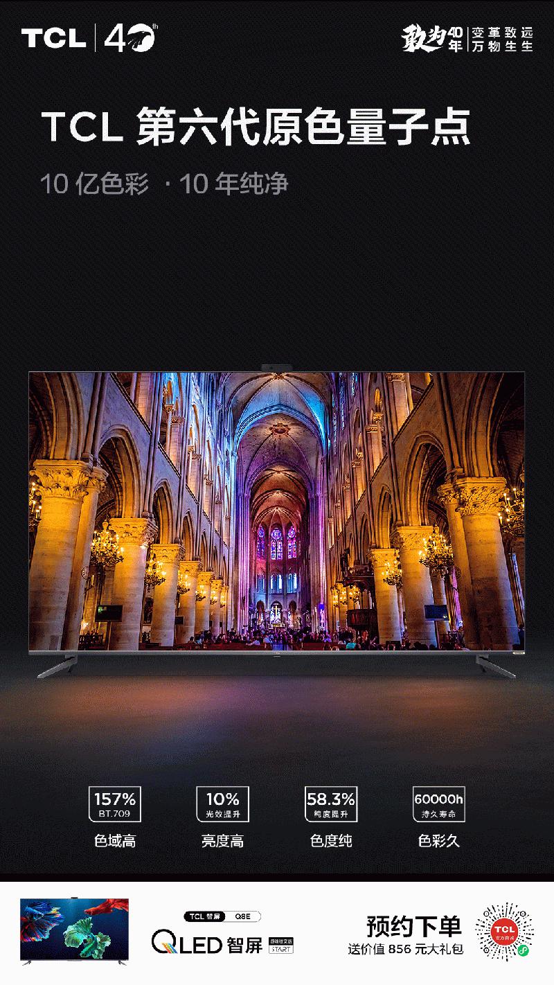 八年六代技术的延伸,10亿原色屏和10年好色彩,TCL为用户带来了领先行业的观看体验,为用户留住世界的美感,也展现了在量子点技术上研发的决心。