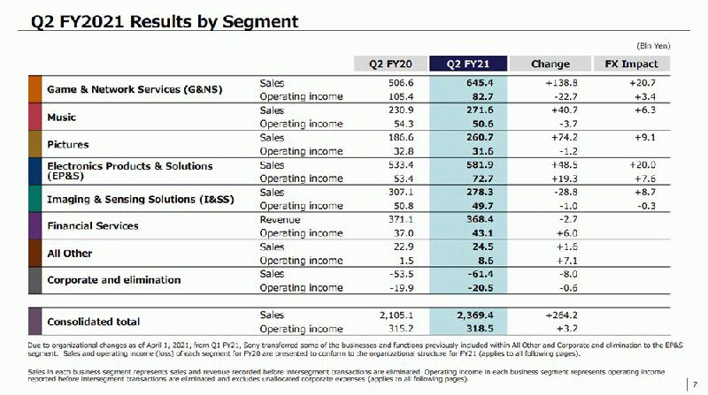 10月28日,索尼集团公司公布2021财年第二季度(2021年7月1日——2021年9月30日)整体业绩。