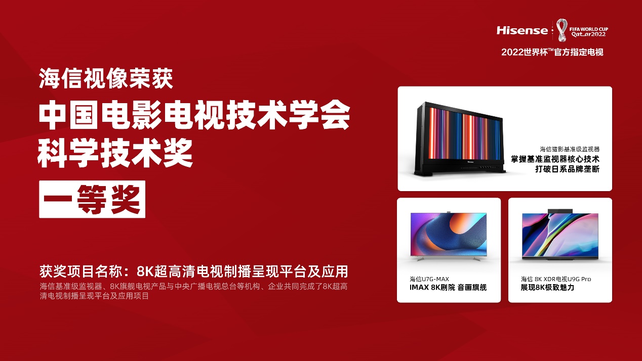 中国电影电视技术学会科学技术奖是经国家科学技术奖励办公室和国家科学技术部批准设立的奖项,主要奖励在广播影视技术领域的科学研究、科技开发创新、科技成果推广应用,以及实现产业化方面取得卓著成绩或突出贡献的组织和个人,从而促进影视科学技术进步,推动我国影视事业发展。据悉,海信视像是唯一一家荣获该奖项一等奖的电视企业。