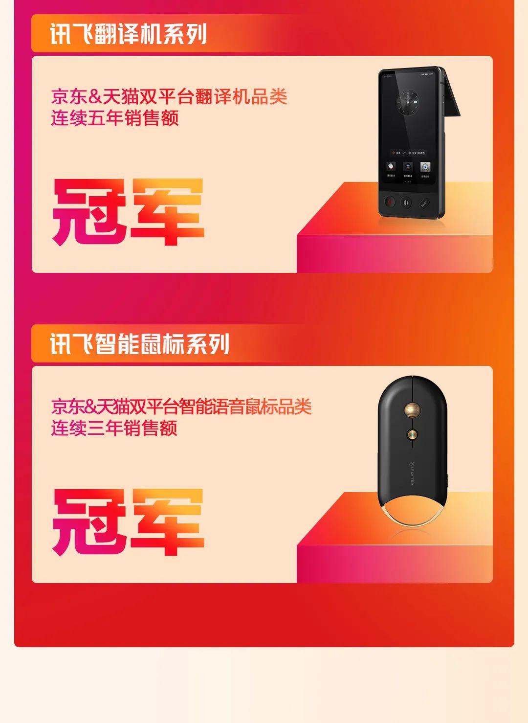 11月12日,科大讯飞公布了2021年的双11终极战报。AI智能硬件持续高速增长,整体销售额同比增长76%。AI办公产品连续三年多产品蝉联冠军,其中讯飞智能办公本系列获得京东&天猫双平台电纸书品类&单品销售额冠军,讯飞智能录音笔系列获得京东&天猫双平台录音笔品类连续三年销售额冠军,讯飞翻译机系列获得京东&天猫双平台翻译机品类连续五年销售额冠军,讯飞智能鼠标系列获得京东&天猫双平台智能语音鼠标品类连续三年销售额冠军。此外,AI学习硬件销售额同比增长300%,不断推出新品,扩展渠道。目前已经有5城16家直营店开业,为广大用户提供便利体验。前不久,讯飞还宣布了消费者业务的全新品牌主张——“AI助你超越所能”,以AI技术赋能消费级产品,AI学习机等产品赛道也实现了跨越式增长。