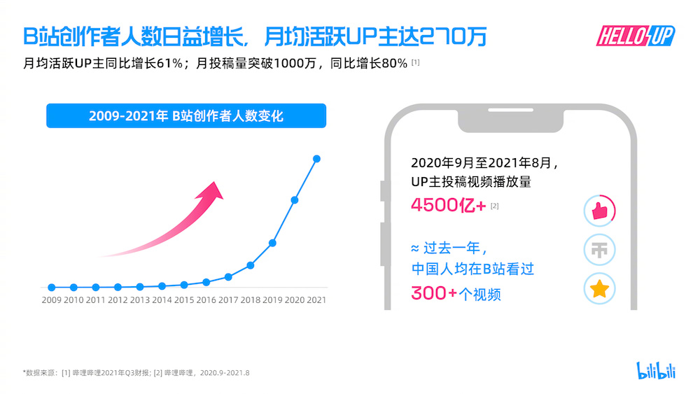 B站公开2021年度创作者生态报告 月投稿数突破1000万