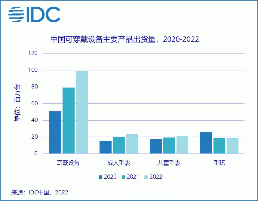 IDC:2022年中国可穿戴市场出货量预计超1.6亿台,同比增长18.5% ......