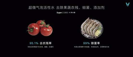 Super2 2000G云米·泉先AI净水器不仅在清洗果蔬时能达到95.1%去农残率,有效去除果蔬中的农残、激素、防腐剂;在清洗海鲜时,更能达到99%除菌率有效去除海鲜中的细菌、有害添加剂,还原鲜甜本味。Super 2更采用炫彩大屏双出水龙头用水量、水质实时看得见,让消费者不仅可以用得放心,更能吃得安心。