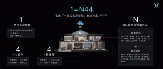 基于完整的全屋产品套系,云米通过5G、AI、IoT等技术融合,在本次发布会上提出更为细化的全屋智能解决方案——“1=N44”。其中,1代表“「一站式全屋智能」解决方案”;N指的是云米目前上市的共计60多种大类的智能“全家桶”;44则是拥有4大能力和4大服务的云米HomeMap,借助全新发布的Alpha X 毫米波超视感知雷达,让用户更加轻松自如地掌握家的各种信息状况,助力全屋智能设备更⾼效、更主动地为用户服务。