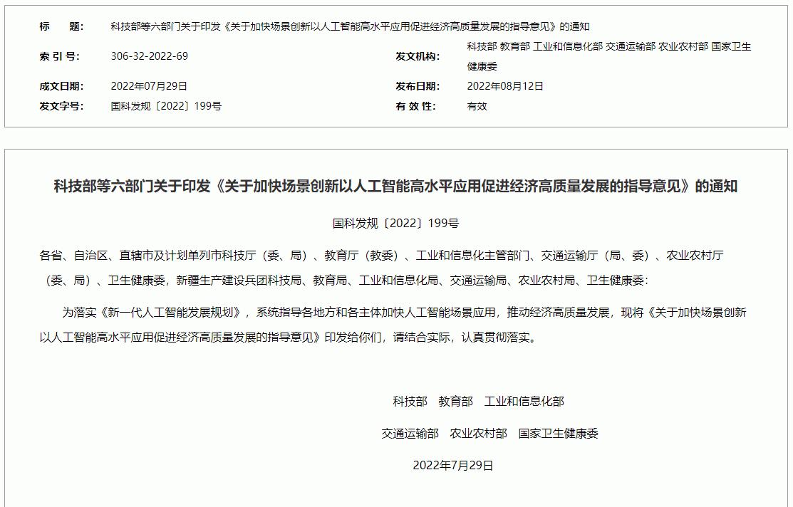 近期,科技部等六部门共同印发《关于加快场景创新以人工智能高水平应用促进经济高质量发展的指导意见》指出,我国人工智能技术、数据和算力资源为开展人工智能场景创新奠定了坚实基础。但仍存在对场景创新认识不到位,重大场景系统设计不足,场景机会开放程度不够,场景创新生态不完善等问题,需要加强对人工智能场景创新工作的统筹指导。