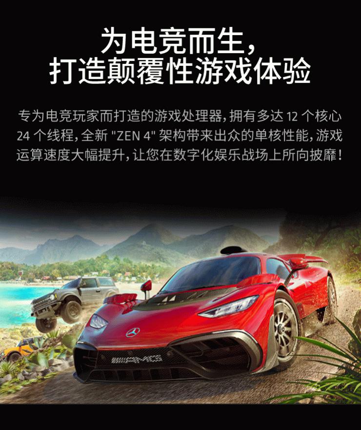 AMD 锐龙9 7900X处理器专为高阶游戏玩家量身打造,它采用了Zen4架构,5nm制程工艺,12核心24线程的高规格配置以及高达5.6GHz的Max主频和76MB的高速游戏缓存,同样支持PCIe 5.0和DDR5内存,这样的配置非常适合高端游戏玩家,通杀目前主流3A大作和竞技网游。