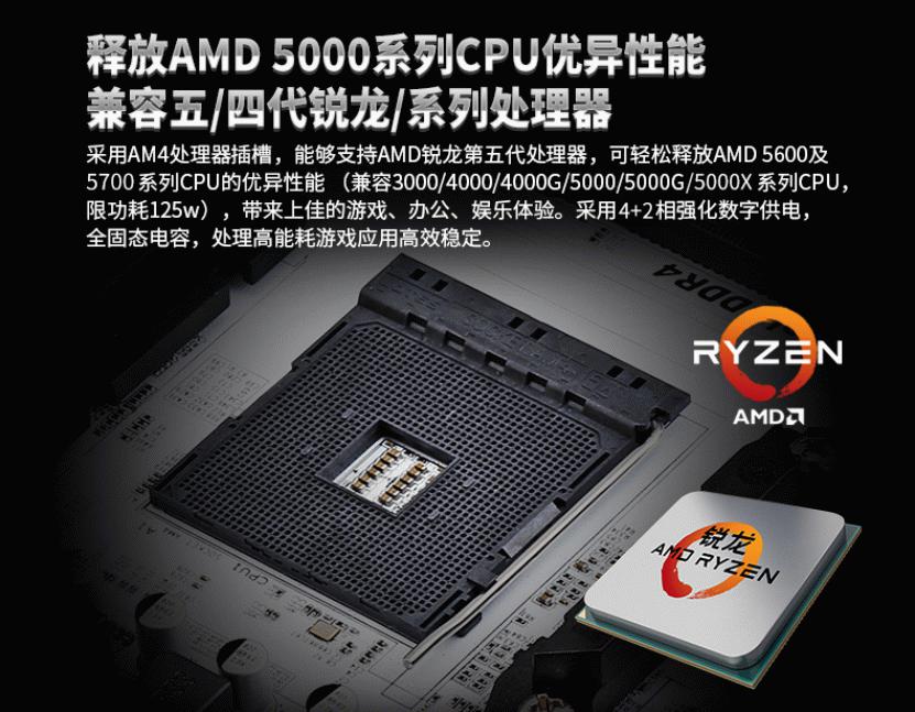 昂达B550-VH系列主板采用B550芯片组,AM4处理器插槽,支持AMD锐龙第五代及四代处理器,可轻松释放AMD 5600及5700系列CPU的优异性能(兼容3000/4000/4000G/5000/5000G/5000X等系列CPU,限功耗125w),带来上佳的游戏、办公、娱乐体验。采用6相强化数字供电,全固态电容,处理高能耗游戏应用高效稳定。