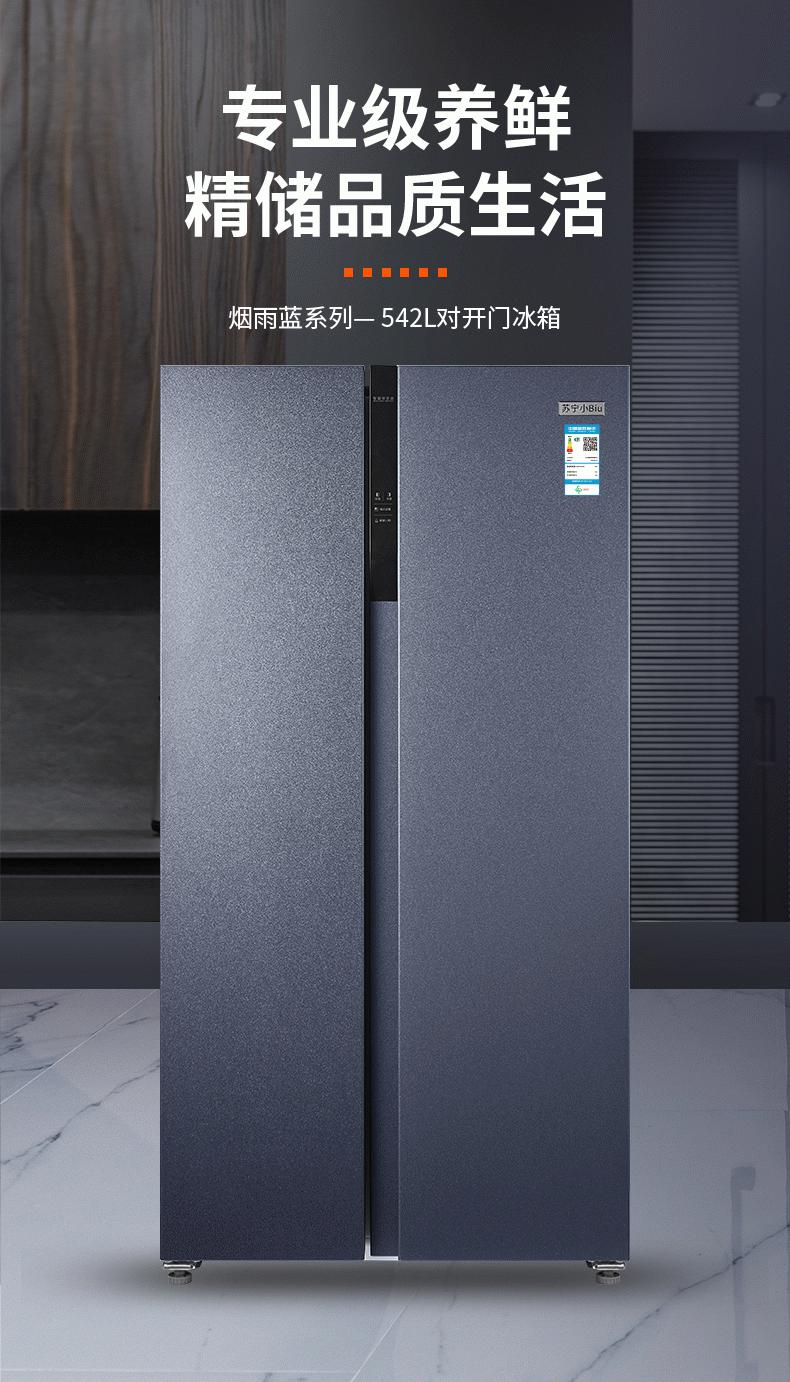 苏宁易购两款小Biu新品首发 542L对开烟雨蓝冰箱