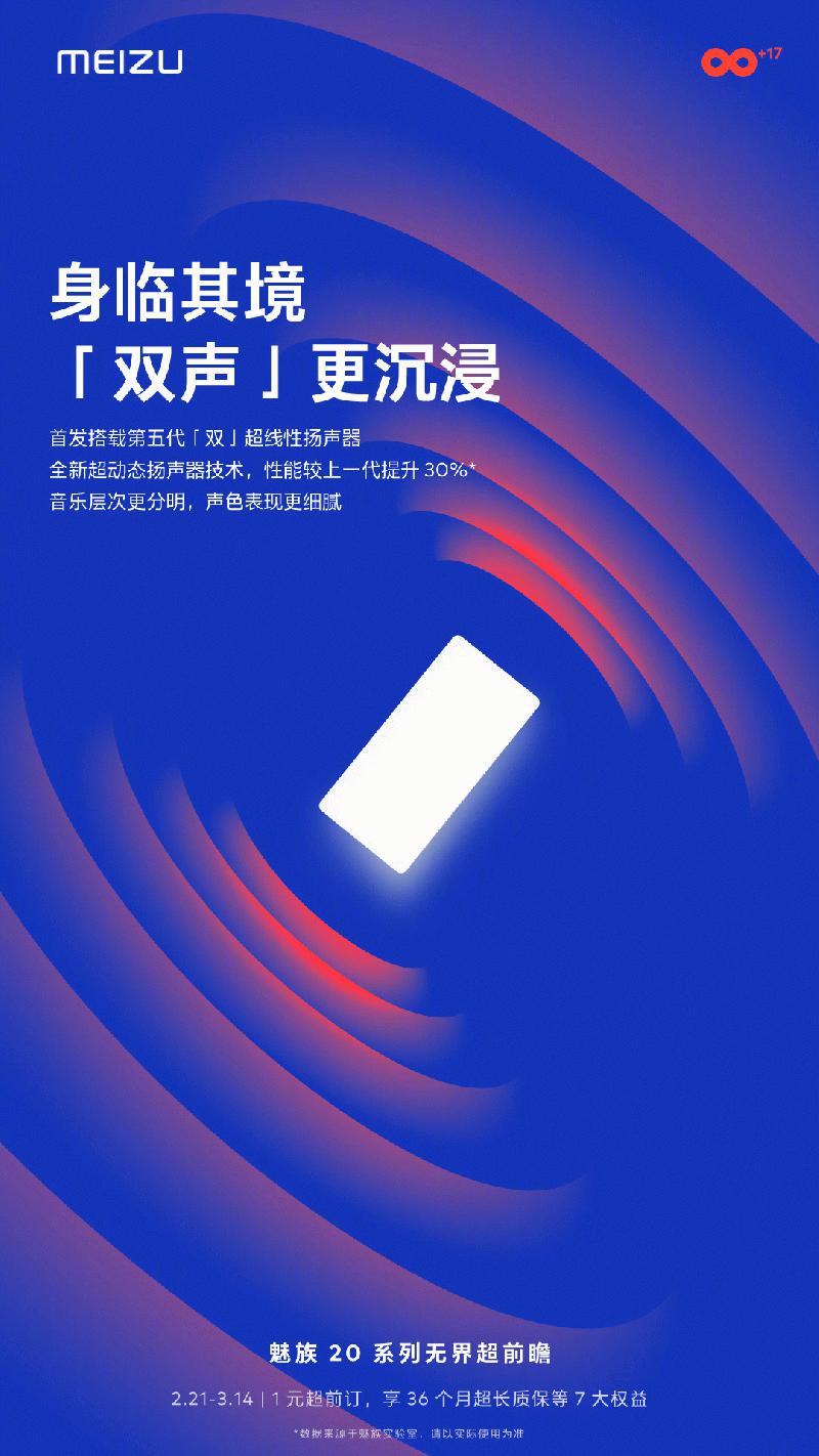 声色表现更细腻 魅族20系列首发搭载第五代「双」超线性扬声器