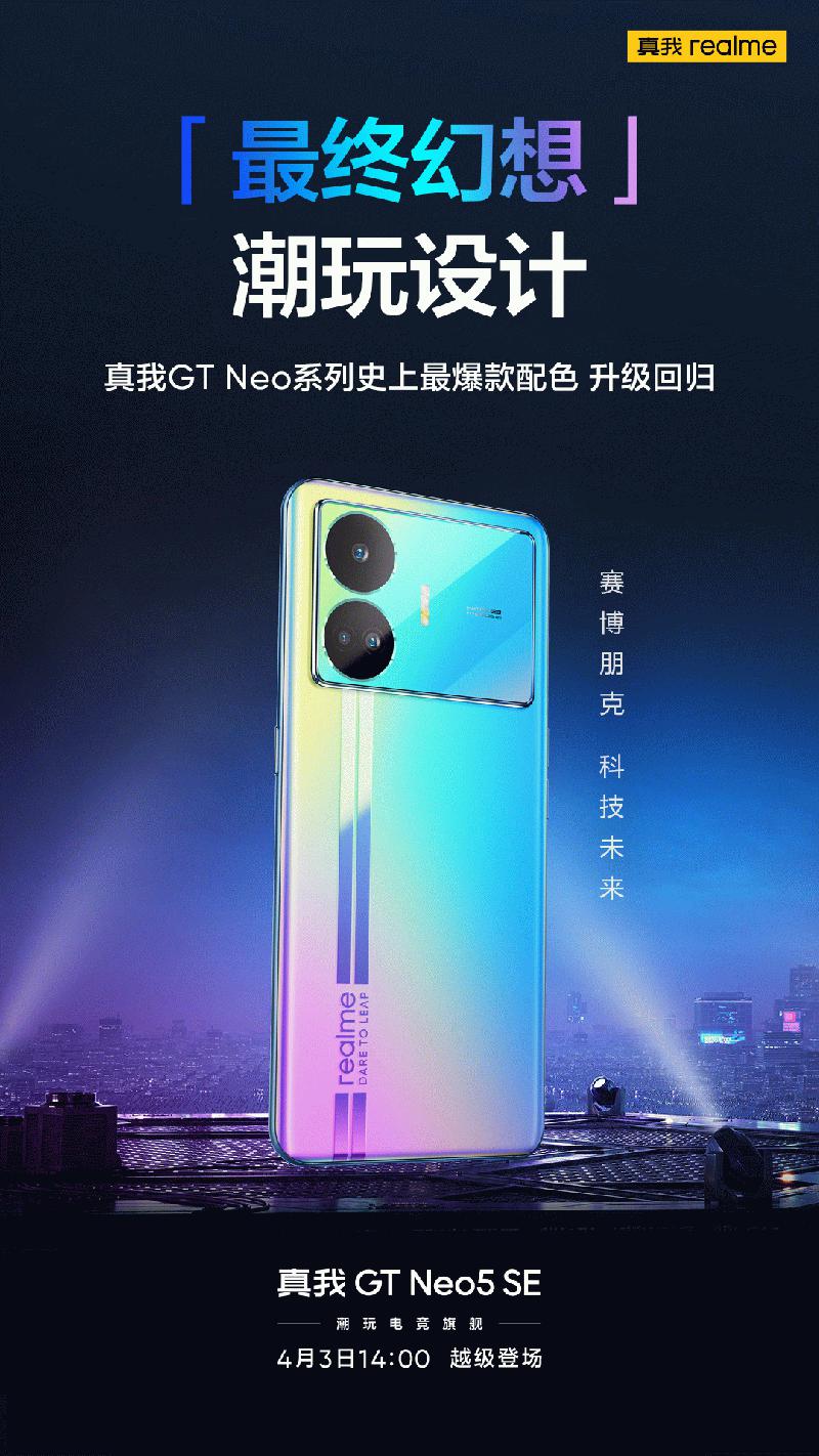 3月23日,realme真我手机宣布,真我GT Neo5 SE将于4月3日14点正式发布。