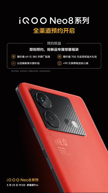 iQOO Neo8系列现已开启全渠道预约,即刻预约抢新品专属惊喜福袋,包括赠价值69元180天原厂延保、以旧换新享大额补贴、赠价值700元会员权益大礼包和+99元享原电池安心换,依旧诚意满满。