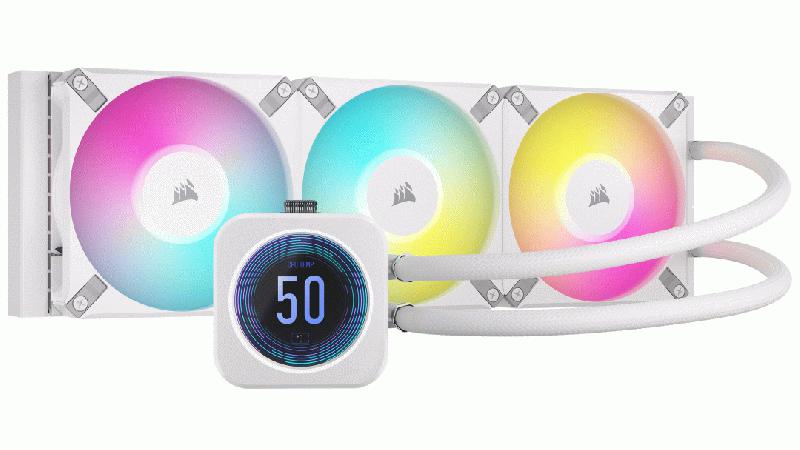 iCUE H150i ELITE LCD XT有黑色、白色两款颜色。配备一块可自定义LCD显示屏,可显示GIFs、图像和系统信息。AF RGB ELITE PWM风扇,2100 RPM转速,带来了超低噪音的气流,使用AirGuide技术可让气流集中吹向360mm尺寸的冷排。搭配超亮CAPELLIX LED灯珠,通过iCUE软件可以进行RGB灯光控制,风扇转速调整和系统温度监测。
