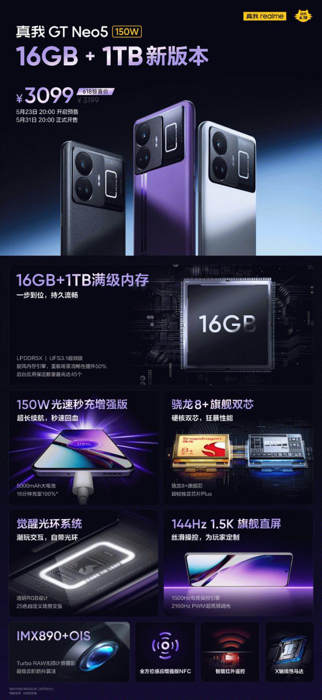 真我GT Neo5全系列标配1TB 618大促2099元起