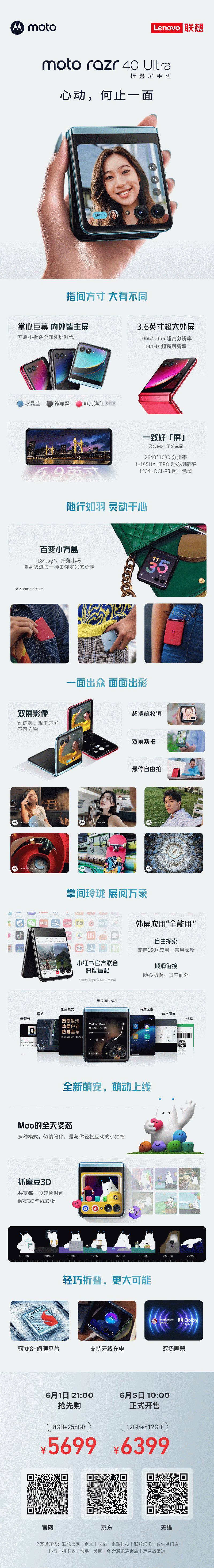 【小熊在线】2023年6月1日,联想召开“心动,何止一面”moto razr 40系列折叠屏手机新品发布会。moto razr 40 Ultra与moto razr 40两款重磅小折叠新品正式亮相。