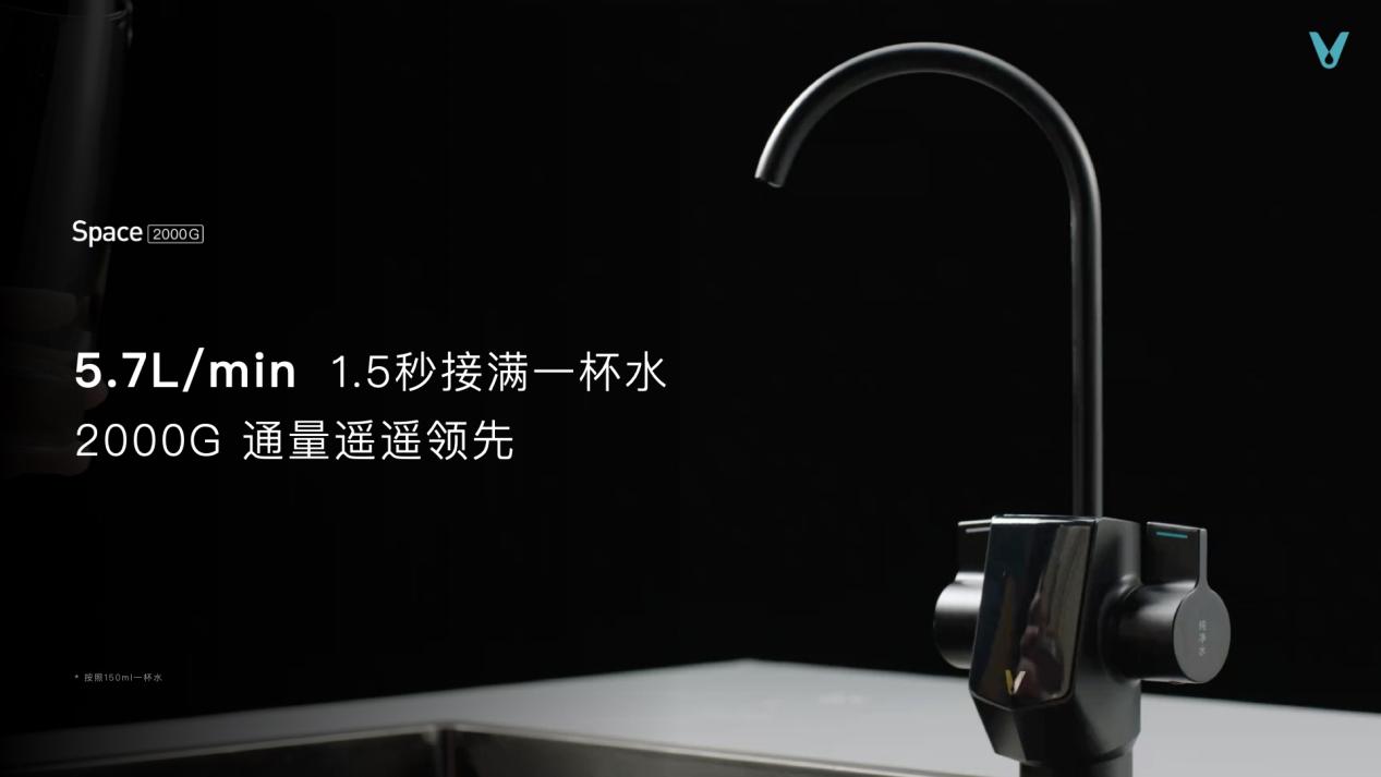 Space 2000G AI净水器:通量遥遥领先,媲美自来水流速 经过净水科技的不断突破,搭载云米“下一代更大通量净水技术”的净水新品——Space 2000G AI净水器在本次发布会上一经亮相即惊艳全场。在净水器硬核指标上再一次突破行业天花板,引领净水器从饮水升级到多场景饮水用水需求,作为迄今出水最快、更能去农残的净水器,云米凭借多项净水黑科技再一次颠覆高端净水的产品形态,给用户带来全新体验,让净水进入下一代“澎湃海量”的新纪元。