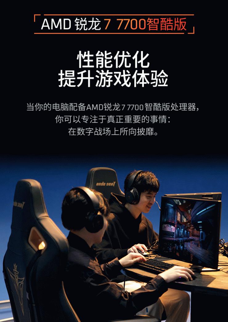 AMD 锐龙7 7700处理器采用了5nm制程工艺的Zen4架构,搭配8核心16线程的配置和3.8GHz的CPU频率,40MB的高速游戏缓存很适合主流电竞玩家,同样超低的65W功耗,对于预算相对有限但是仍然想要追求高质量整机的学生玩家来说是性价比更高的选择,更低的功耗就更加省电,学生玩家在宿舍使用也毫无压力,升级到AM5平台后续更换CPU也非常方便。