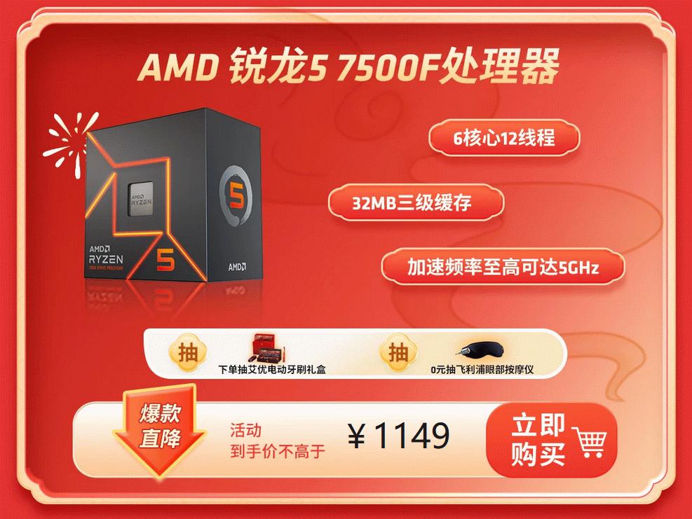 此次活动中的大爆款CPU非 AMD 锐龙7 7800X3D处理器莫属了,活动到手不高于2599元;其次是AMD 锐龙5 7500F处理器,到手不高于1149元。这样的报价加上丰富的会员活动内容,绝对值得玩家们下单了。