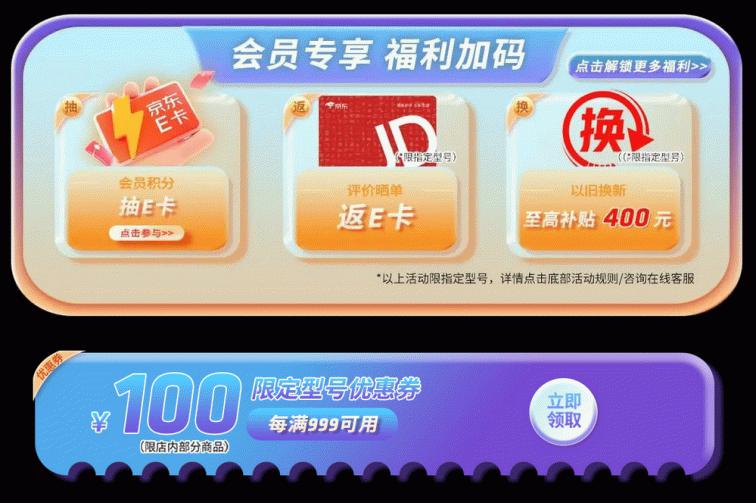 AMD此次618大促针对店铺会员进行了福利加码,所以建议大家成为AMD京东自营旗舰店的会员之后再来选购自己心仪的商品,加入会员可以抽取京东E卡,周边礼品,福利享不停。活动期间所有用户下单可参与评价晒单返京东E卡,以旧换新至高补贴400元(具体活动型号以及规则请前往活动页面/咨询在线客服详细了解)。