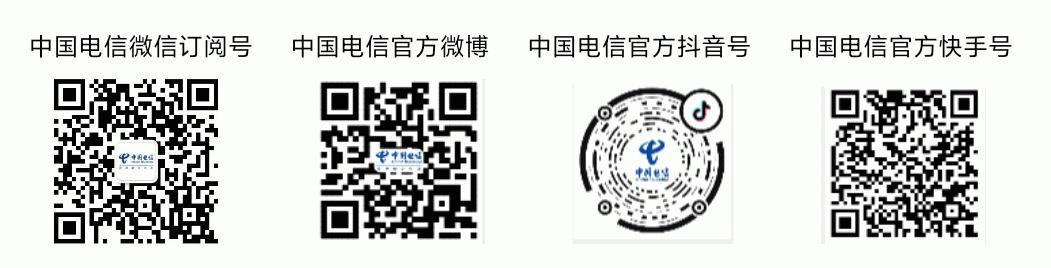 获取更多信息,请访问中国电信官方网站www.chinatelecom.com.cn或者关注“@中国电信”微信订阅号、官方微博、抖音和快手账号。