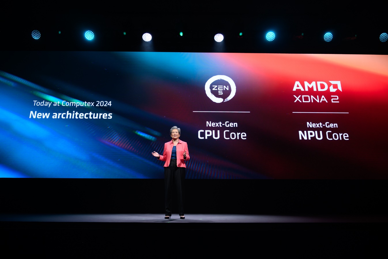 2024 年 6 月 4 日 — 在 Computex 2024 上,AMD (纳斯达克股票代码: AMD) 宣布了一系列突破性的、旨在开启 AI 体验新时代的下一代架构和产品。AMD为下一代 AI PC推出了全新的 AMD 锐龙AI 300 系列处理器,该处理器配备目前性能超强的神经处理单元 (NPU),为未来直接在笔记本电脑上实现全面的沉浸式 AI 计算铺平了道路。AMD 还推出了下一代 AMD 锐龙 9000 系列台式机处理器,可以为游戏玩家、内容创作者和生产消费者提供出色的性能和能效,进一步巩固了其领先地位。这些新处理器壮大了业已丰富的产品组合,在云端、边缘、客户端以及更多领域驱动AI。