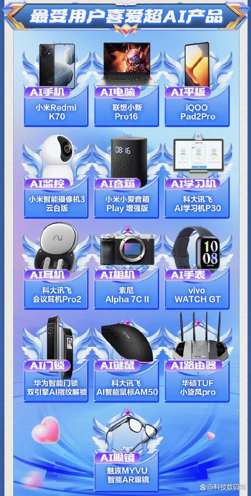 这些产品不仅展示了当前AI技术落地硬件的顶尖水平,也为消费者提供了更智能、便捷的生活和工作装备选择,凭借卓越的AI性能体验和创新技术赢得了广大用户的青睐。