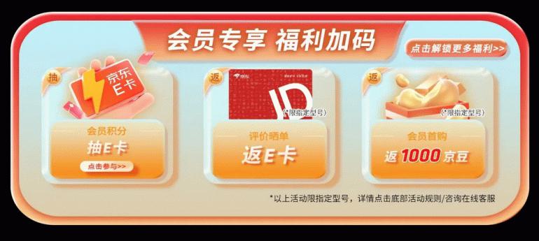 在618钜惠返场阶段,所有用户下单可参与评价晒单返京东E卡的活动,板U套装,卡U套装更优惠。同时建议朋友们成为AMD京东自营旗舰店的会员之后再来选购自己心仪的商品,加入会员可以用会员积分抽取京东E卡,会员首购还返1000京豆,还有其它各种福利享不停。