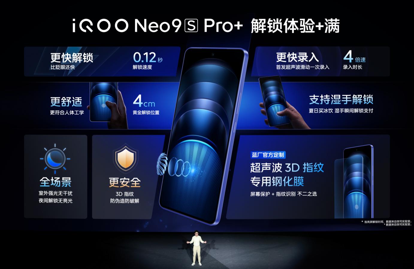 此次,iQOO Neo9S Pro+还行业首发超声波滑动一次录入,对比普通光学指纹的按压录入简直像开了四倍速,同时推出为超声波3D指纹量身打造的钢化膜,解锁体验“+满”。