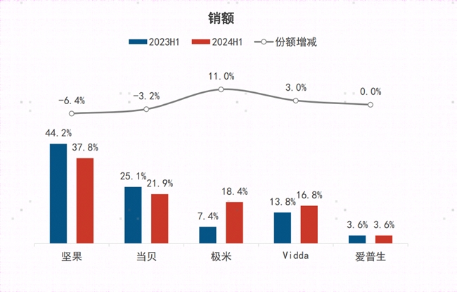 而Vidda是Vidda是海信旗下年轻科技潮牌,自品牌升级以来就推出了大量高质价比的爆款产品。根据奥维数据,Vidda在2022年、2023年两次进入国内线上电视销量前五名,2024年上半年,Vidda更是进入国内线上电视销量前三甲。如此亮眼的成绩说明Vidda的产品质量过硬,整体品质更是经过了大量用户的检验,网友们可以放心下单!