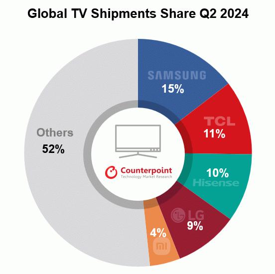 Counterpoint研究副总监Sujeong Lim表示:"在巴黎奥运会即将到来的背景下,第二季度电视市场的反弹在意料之中。欧洲市场增长明显,除中国和日本以外的亚洲市场以及拉丁美洲市场的表现也好于预期。