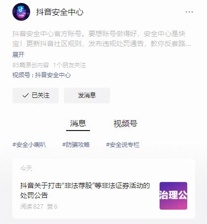 抖音:长期坚决打击包括“非法荐股”在内的各类非法证券活动