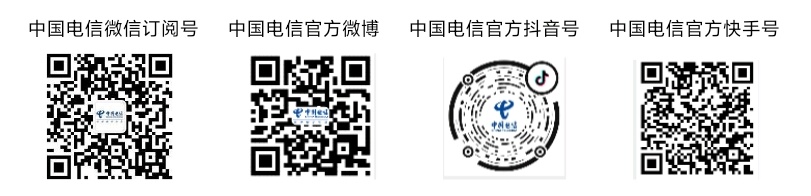 获取更多信息,请访问中国电信官方网站www.chinatelecom.com.cn或者关注“@中国电信”微信订阅号、官方微博、抖音和快手账号。