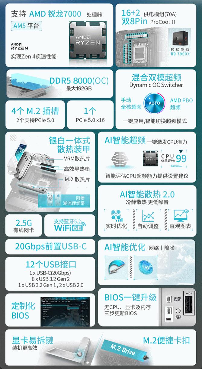 接下来这款套装搭配了华硕ROG STRIX X670E-A GAMING WIFI主板,这款产品是一款高性能、专为游戏玩家和专业用户设计的主板,其卓越的特性和功能使其成为主流DIY玩家的热门选择。