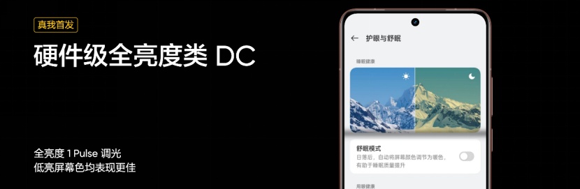 此外,真我GT7 Pro带来全新硬件级全亮度类DC调光,实现单帧只有单次闪烁,频闪无限接近LCD的0频闪,即使在低亮度下也有极高的色彩均一性。凭借全面领先的护眼方案,真我GT7 Pro获得德国莱茵的无频闪认证和硬件级低蓝光认证,为用户带来划时代的护眼体验。