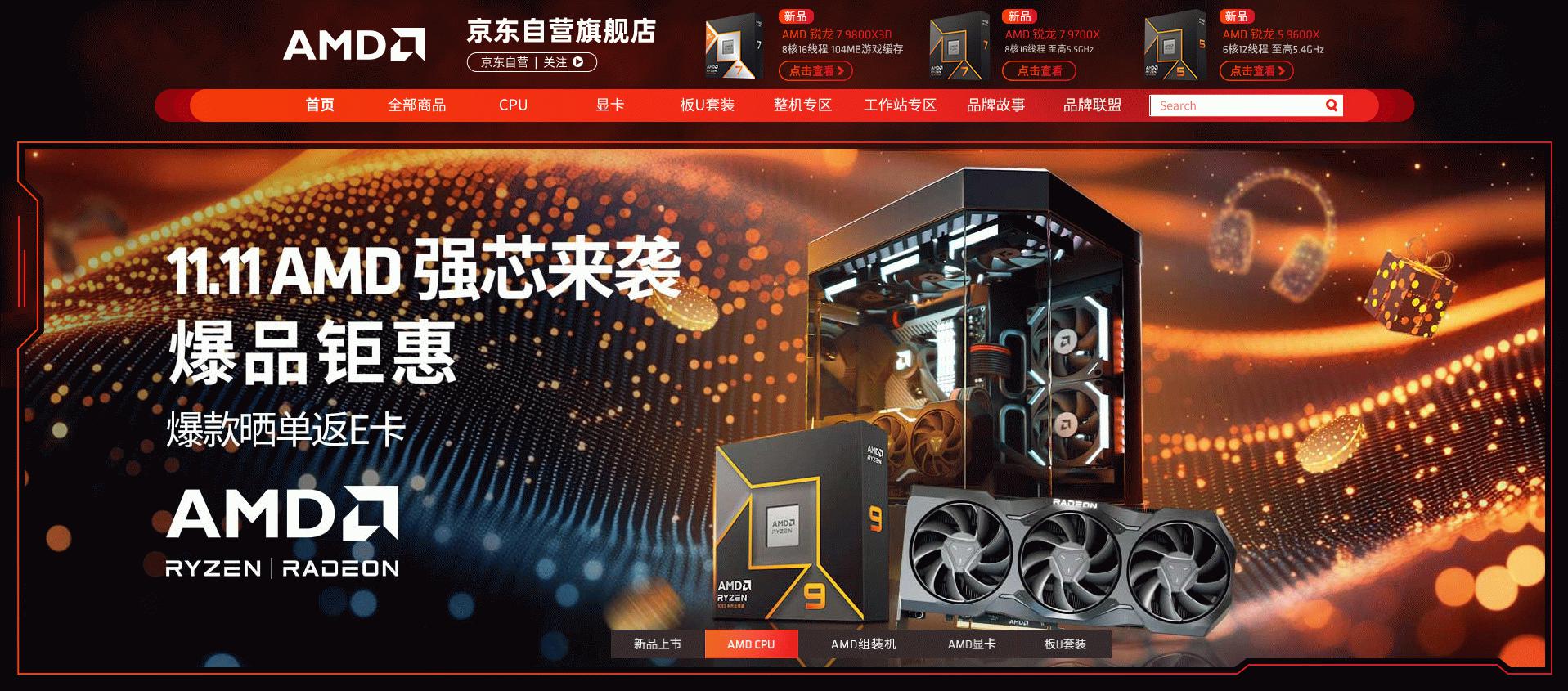 选购就现在!AMD京东自营旗舰店11.11大促优惠拉满