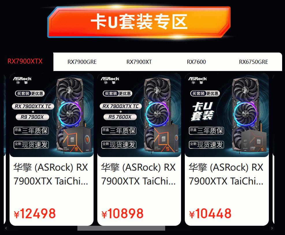 活动页面还有很多AMD锐龙处理器的板U套装和卡U套装,这些结合了AMD和合作伙伴芯片组产品和显卡产品的套装不仅搭配起来相得益彰,套装价格更是优惠,大家可以一站式购全想要打造平台所需的硬件产品。