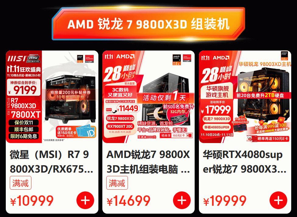 AMD京东自营旗舰店今年11.11的终极活动就是这些了,大家可以前往下方活动页面抓紧选购,平台限时补贴真的就是这最后一天了,想要以更好的价格入手心仪硬件产品的DIY玩家们真的该行动起来了。