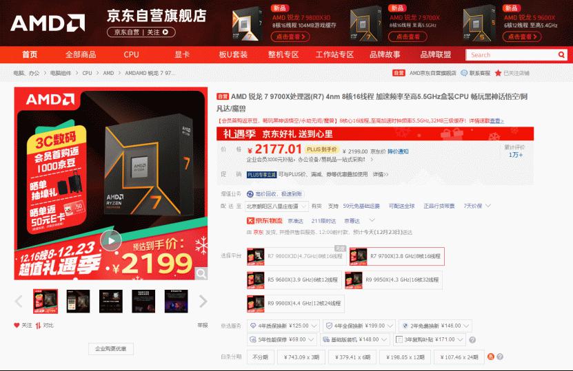 目前AMD 锐龙7 9700X处理器在京东自营旗舰店的报价是2199元, PLUS会员还能再优惠。同时大家可以参与晒单返E卡和抽周边壕礼的活动(指定型号前往页面查看),成为京东旗舰店会员还有首购返京豆和多重会员福利可享。已经在STEAM冬季特卖囤好游戏的玩家们趁着目前的好价可以随时入手锐龙7 9700X了,这样接下来的假期就可以开心畅玩这些经典之作。