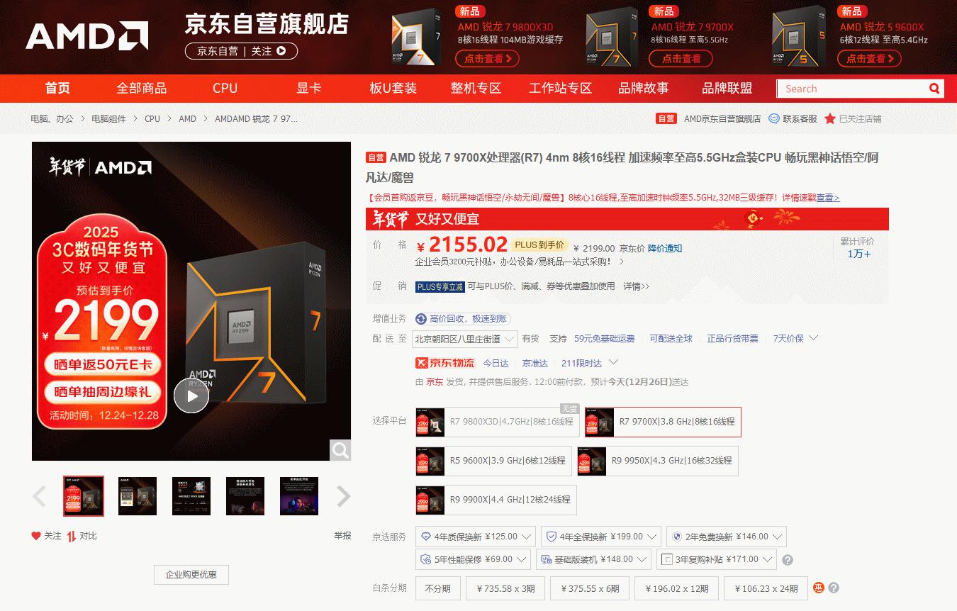 目前AMD 锐龙7 9700X处理器在京东自营旗舰店的报价是2199元, PLUS会员还能再优惠。同时大家可以参与晒单返E卡和抽周边壕礼的活动(指定型号前往页面查看),成为京东旗舰店会员还有首购返京豆和多重会员福利可享。目前这个价格属于近期的日常低价了,大家在年终囤好游戏以后可以随时关注锐龙7 9700X处理器的价格,在最合适的时候直接下单吧。
