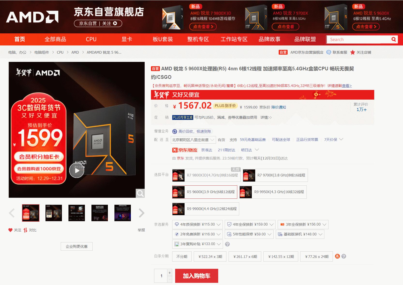 AMD京东自营旗舰店年终活动链接: