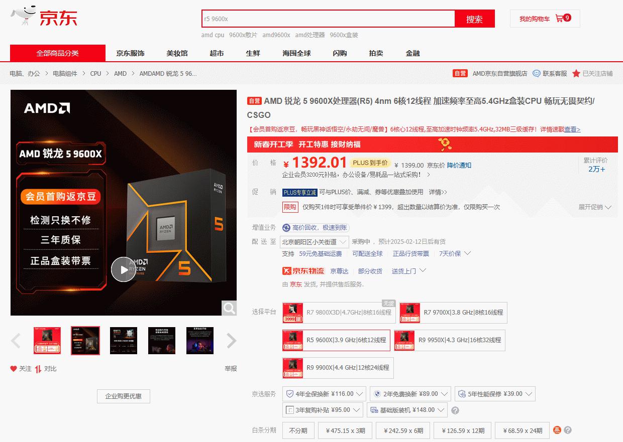 目前AMD 锐龙5 9600X处理器在京东自营旗舰店的最新报价是1399元,京东PLUS会员到手更加优惠。朋友们在购买之后还可以参与晒单抽周边壕礼的活动(指定型号前往页面查看),成为京东旗舰店会员还有首购返666京豆和积分抽大奖活动。目前AMD 锐龙5 9600X处理器的价格比较平稳,在这开工大吉的日子里,选择 AMD 锐龙5 9600X,让您的2025年更加高效、更加精彩。