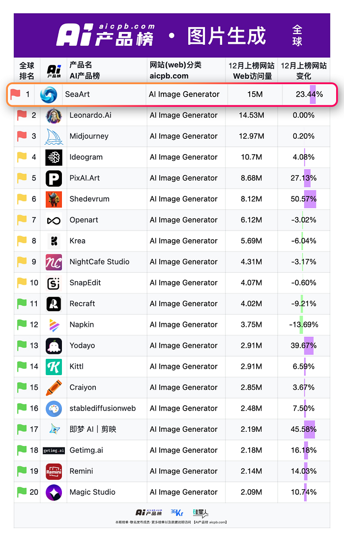 登顶全球AI生图榜首 “国货之光”SeaArt AI超越MJ
